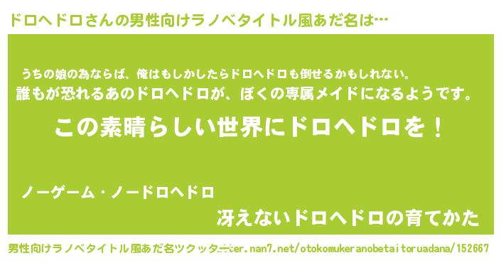 | ヒーロー風カッコイイあだ名 | 『仮面ドロダー』『ネオドロヘドロ』 |
