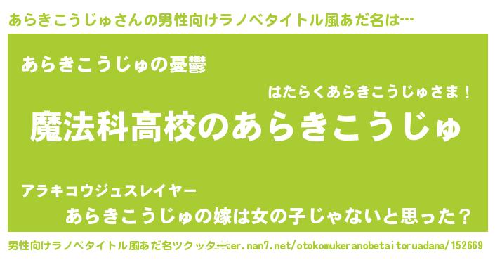 | 女子向けラノベタイトル風あだ名 | 『あらきこうじゅアンティーク』 |
