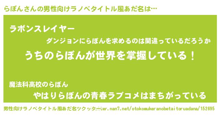 | 意味不明あだ名 | 『つくし科らぼん属』『自称らぼん』 |