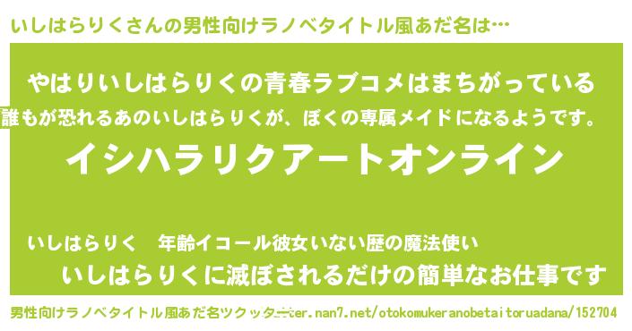 | 胡散臭い通販商品みたいなあだ名 | 『億万長者になれるブレスレット…その名も「いしはらりく」』 |