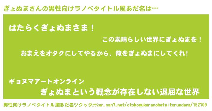 | ヘコむあだ名 | 『ぎょぬま(震え声)』『ぎょにゅー』 |