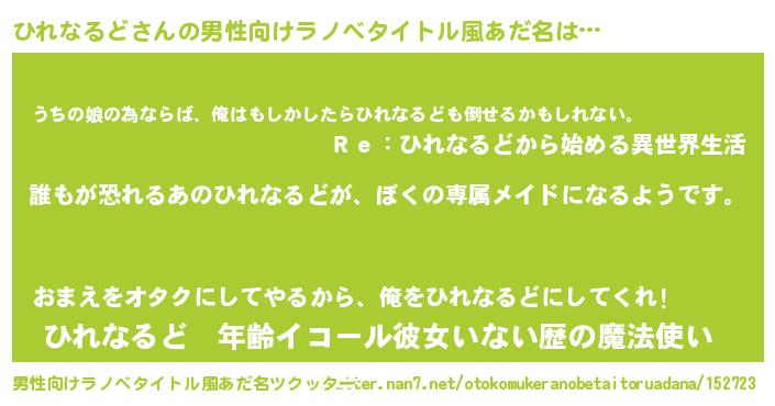 | 女子向けラノベタイトル風あだ名 | 『異世界でカフェひれなるどを開店しました。』 |