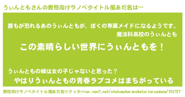 | 意味不明あだ名 | 『住所不定無職うぃんとも(81歳)』 |