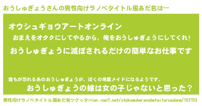 | 胡散臭い通販商品みたいなあだ名 | 『億万長者になれるブレスレット…その名も「おうしゅぎょう」』 |