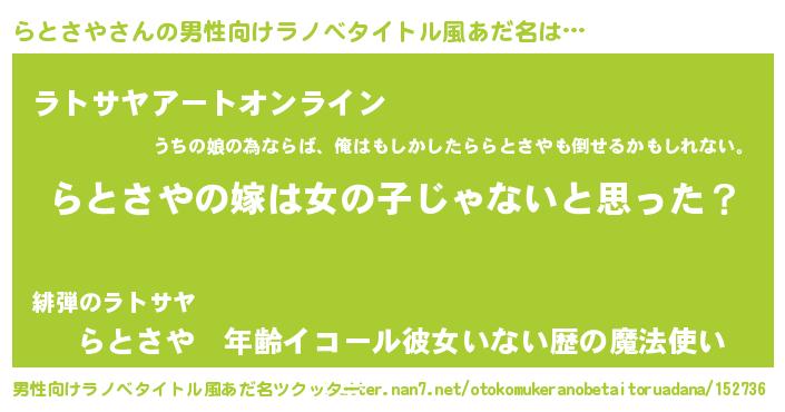 | 女子向けラノベタイトル風あだ名 | 『らとさや様がみてる』 |