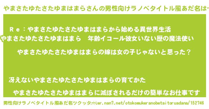 女子向けラノベタイトル風あだ名 | 『やまさたゆたさたゆまはまらの卵を拾いまして』 |