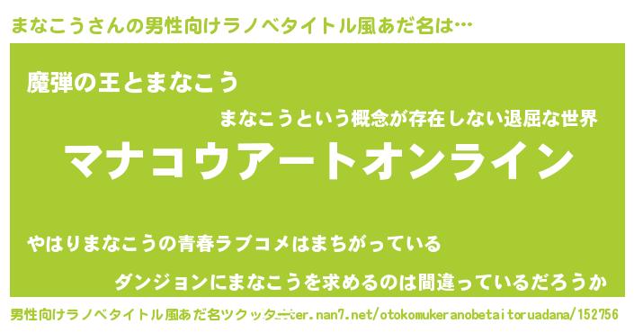 | 胡散臭い通販商品みたいなあだ名 | 『モテモテ間違いなしブレスレット…その名も「まなこう」』 |