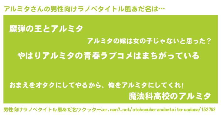 | 意味不明あだ名 | 『アルミタフォーエバー』『自称アルミタ』 |