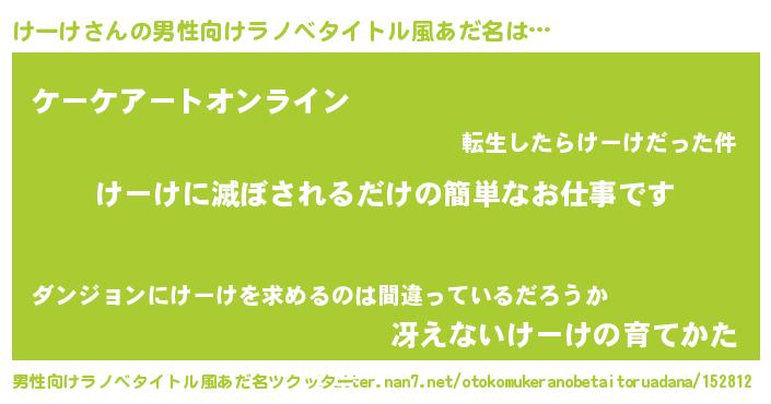 | 胡散臭い通販商品みたいなあだ名 | 『億万長者になれる水晶球…その名も「けーけ」』 |