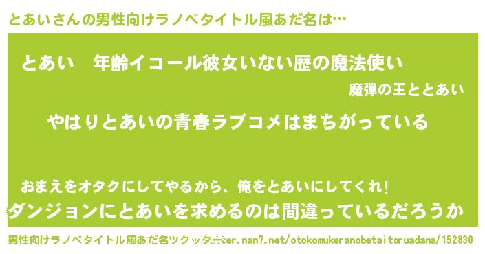 | 女子向けラノベタイトル風あだ名 | 『とあいの雑貨屋さん』 |