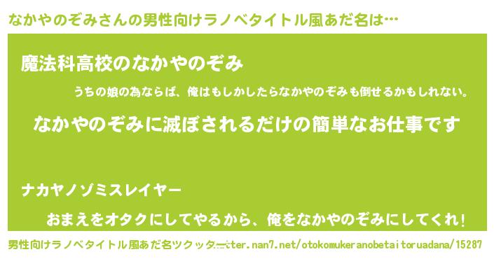 | 意味不明あだ名 | 『自称なかやのぞみ』 |