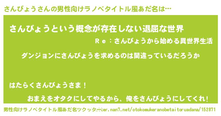 | 意味不明あだ名 | 『とにかく怪しいさんびょう』 |