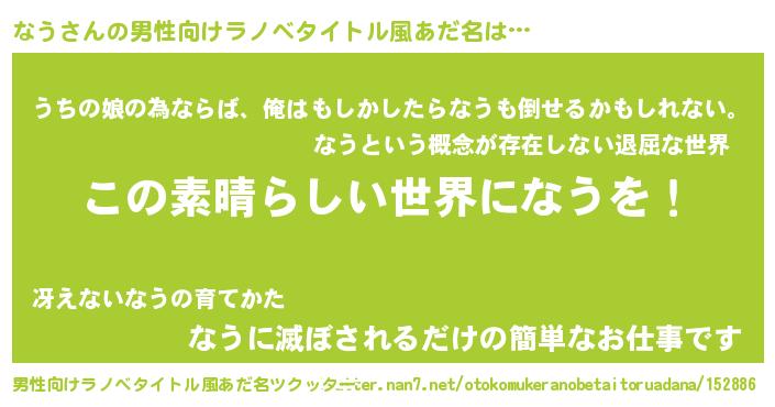 | 胡散臭い通販商品みたいなあだ名 | 『あなたにだけ特別に提供する限定10本のレアな日本酒…その名も「なう」』 |