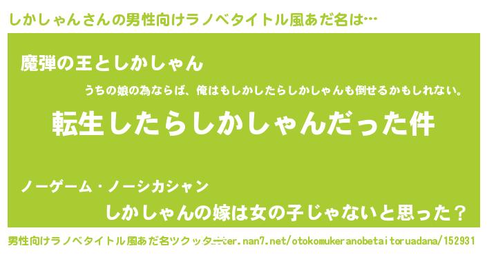 | 胡散臭い通販商品みたいなあだ名 | 『世界中を虜にした限定10本のレアな日本酒…その名も「しかしゃん」』 |