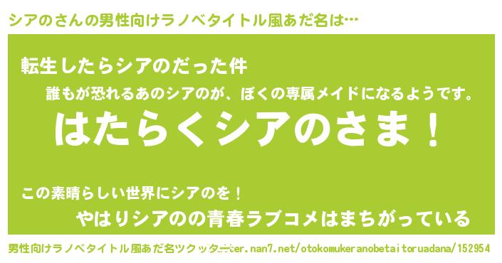 | 胡散臭い通販商品みたいなあだ名 | 『幸せが訪れる高級そうな壺…その名も「シアの」』 |
