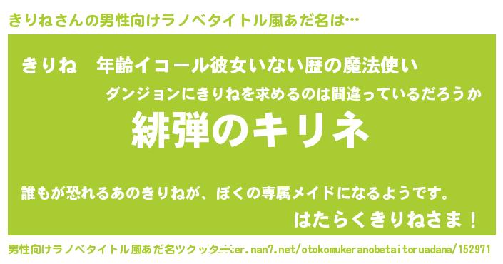 | ヒーロー風カッコイイあだ名 | 『暗黒騎士キリ』『ネオキリネ』 |