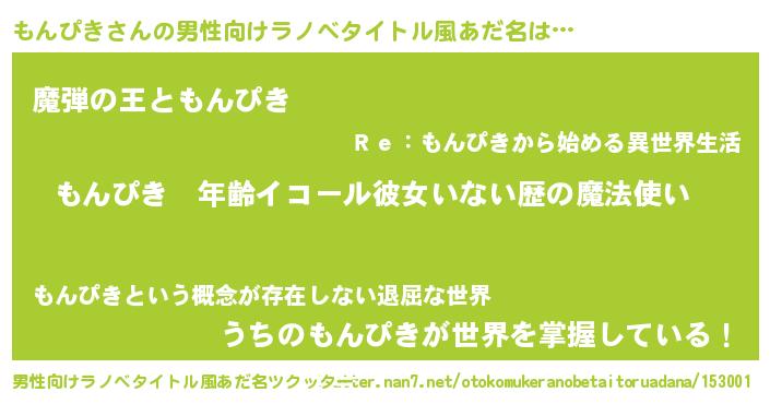 | 胡散臭い通販商品みたいなあだ名 | 『あなたにだけ特別に提供する世界で10本だけ現存している希少なブランデー…その名も「もんぴき」』 |