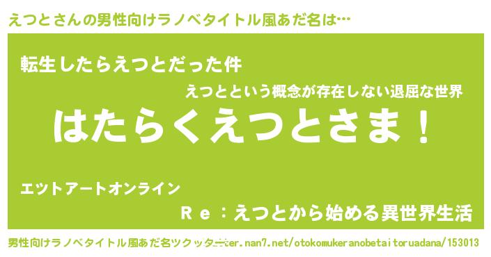 えつとさんの男性向けラノベタイトル風あだ名をツクッター!