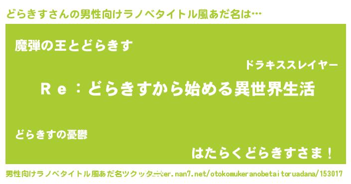 | 女子向けラノベタイトル風あだ名 | 『闇のどらきす』 |