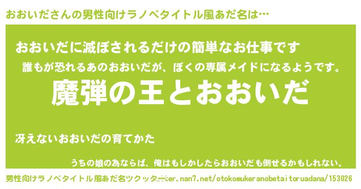 | 女子向けラノベタイトル風あだ名 | 『乙女ゲームの破滅フラグしかない悪役おおいだに転生してしまった…』 |