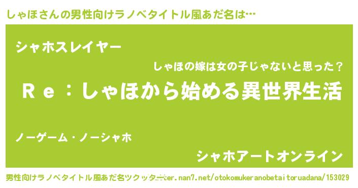 | 女子向けラノベタイトル風あだ名 | 『しゃほストレイドッグス』 |