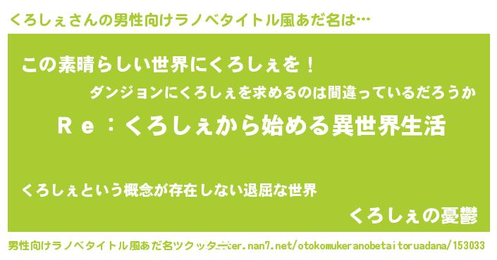 | 女子向けラノベタイトル風あだ名 | 『くろしぇストレイドッグス』 |