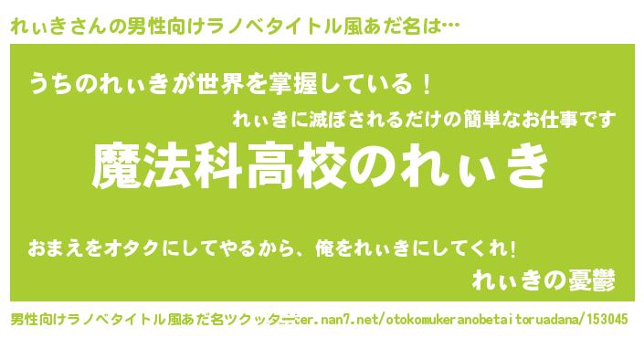 | 女子向けラノベタイトル風あだ名 | 『れぃきなんてお断りですっ。』 |