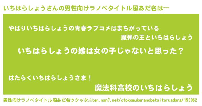 | 意味不明あだ名 | 『とにかく怪しいいちはらしょう』 |