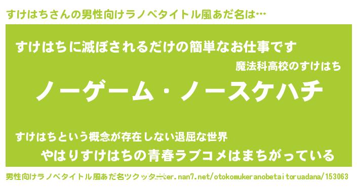 | 女子向けラノベタイトル風あだ名 | 『すけはち恋絵巻』『すけはち伯爵の花嫁』 |
