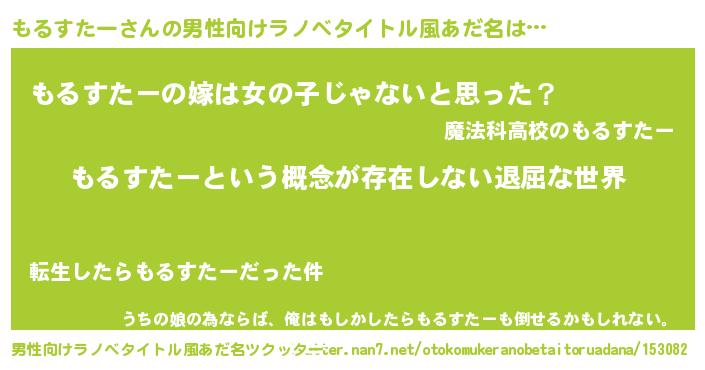 もるすたーさんの男性向けラノベタイトル風あだ名をツクッター!