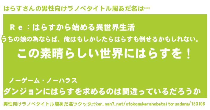 | 女子向けラノベタイトル風あだ名 | 『乙女ゲームの破滅フラグしかない悪役はらすに転生してしまった…』 |