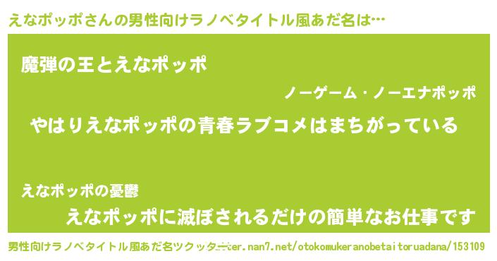 | 女子向けラノベタイトル風あだ名 | 『えなポッポの雑貨屋さん』 |