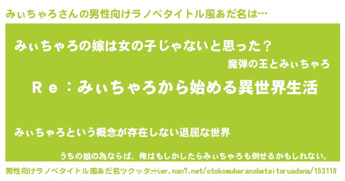 | 女子向けラノベタイトル風あだ名 | 『みぃちゃろストレイドッグス』 |