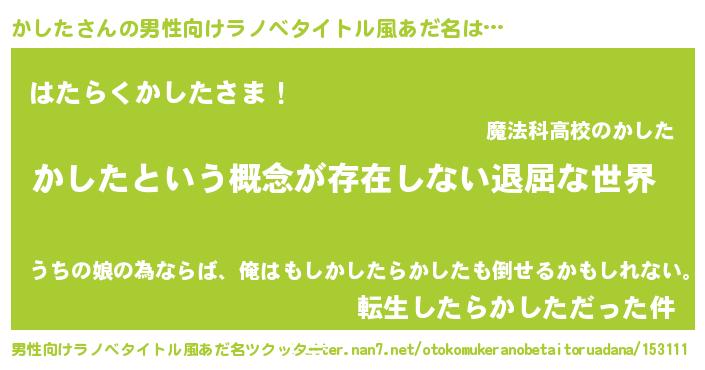| ヘコむあだ名 | 『かした(笑)』『つくし』『かしを』 |