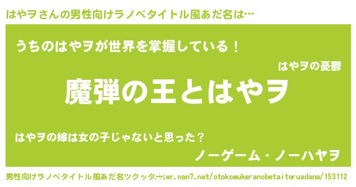 | 意味不明あだ名 | 『住所不定無職はやヲ(13歳)』 |