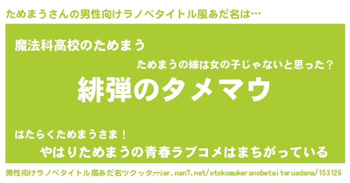 | ヒーロー風カッコイイあだ名 | 『ウルトラ戦士タメマウ』『黄金騎士タメ』 |
