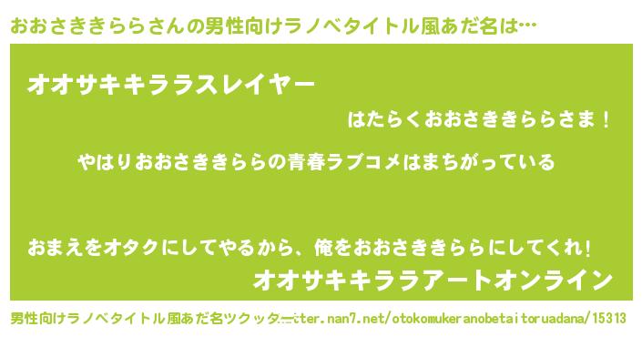 | 意味不明あだ名 | 『おおさききららフォーエバー』 |