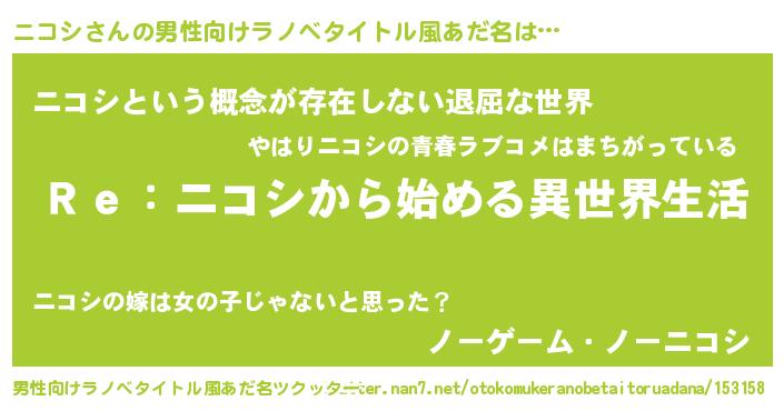 ニコシさんの男性向けラノベタイトル風あだ名をツクッター!