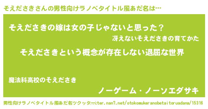 そえださきさんの男性向けラノベタイトル風あだ名をツクッター!
