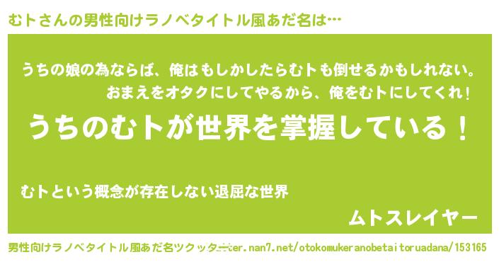 | 女子向けラノベタイトル風あだ名 | 『男装むトの憂鬱な任務』『むト恋絵巻』 |