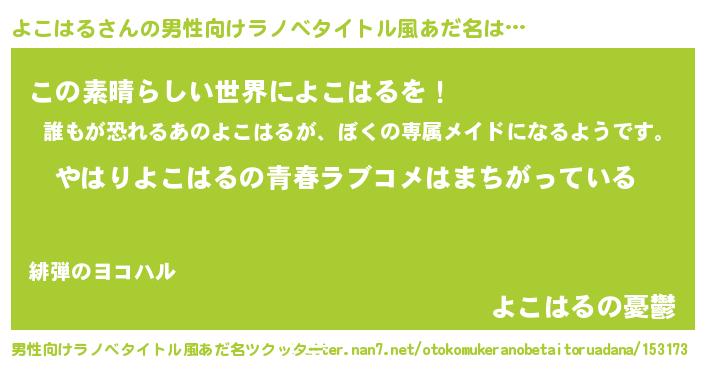 | 女子向けラノベタイトル風あだ名 | 『よこはるの雑貨屋さん』 |