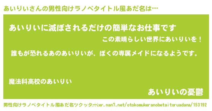 | 女子向けラノベタイトル風あだ名 | 『異世界でカフェあいりいを開店しました。』 |