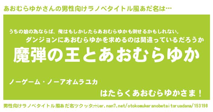 | 女子向けラノベタイトル風あだ名 | 『あおむらゆかが死なない童話 林檎のあおむらゆかの診療簿』 |