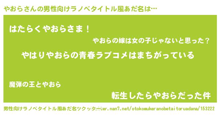 | ヒーロー風カッコイイあだ名 | 『ウルトラやおらマン』『暗黒騎士ヤオ』 |