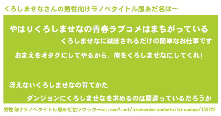| 女子向けラノベタイトル風あだ名 | 『くろしませな夫妻のなれそめ』 |