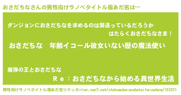 | 女子向けラノベタイトル風あだ名 | 『おさだちなの玉の輿計画!』 |