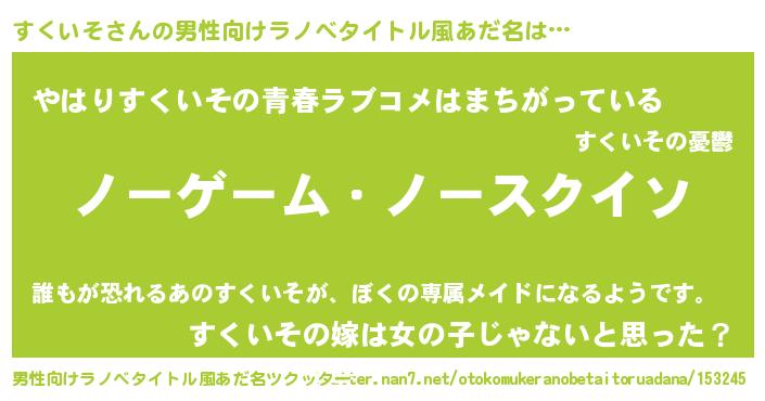 | 女子向けラノベタイトル風あだ名 | 『死神すくいその再婚』 |