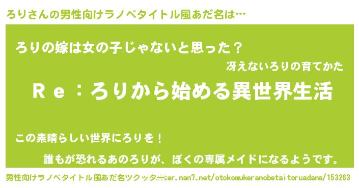 | ヘコむあだ名 | 『ろりを』『ろり(小並感)』 |