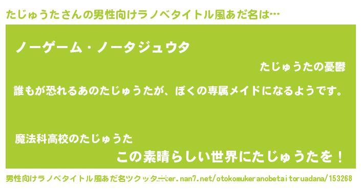 | 伝説のあだ名 | 『古より伝わる吟遊詩人たじゅうた』 |