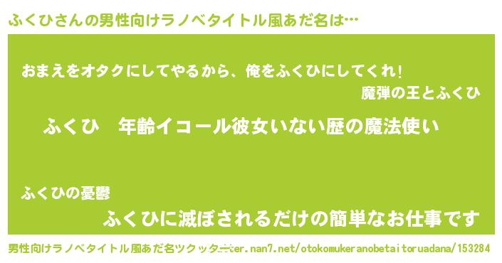 | ヘコむあだ名 | 『ふくっふぃ~』『ふくひ(苦笑)』 |